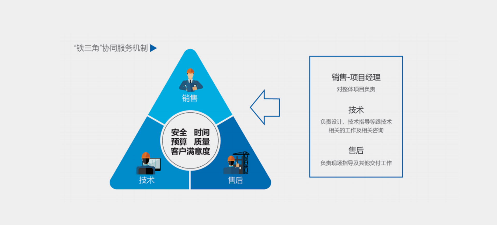 聚焦客戶需求,大項目、重點項目實行“鐵三角”服務(wù),協(xié)同作戰(zhàn),真正提高交付能力和客戶滿意度。