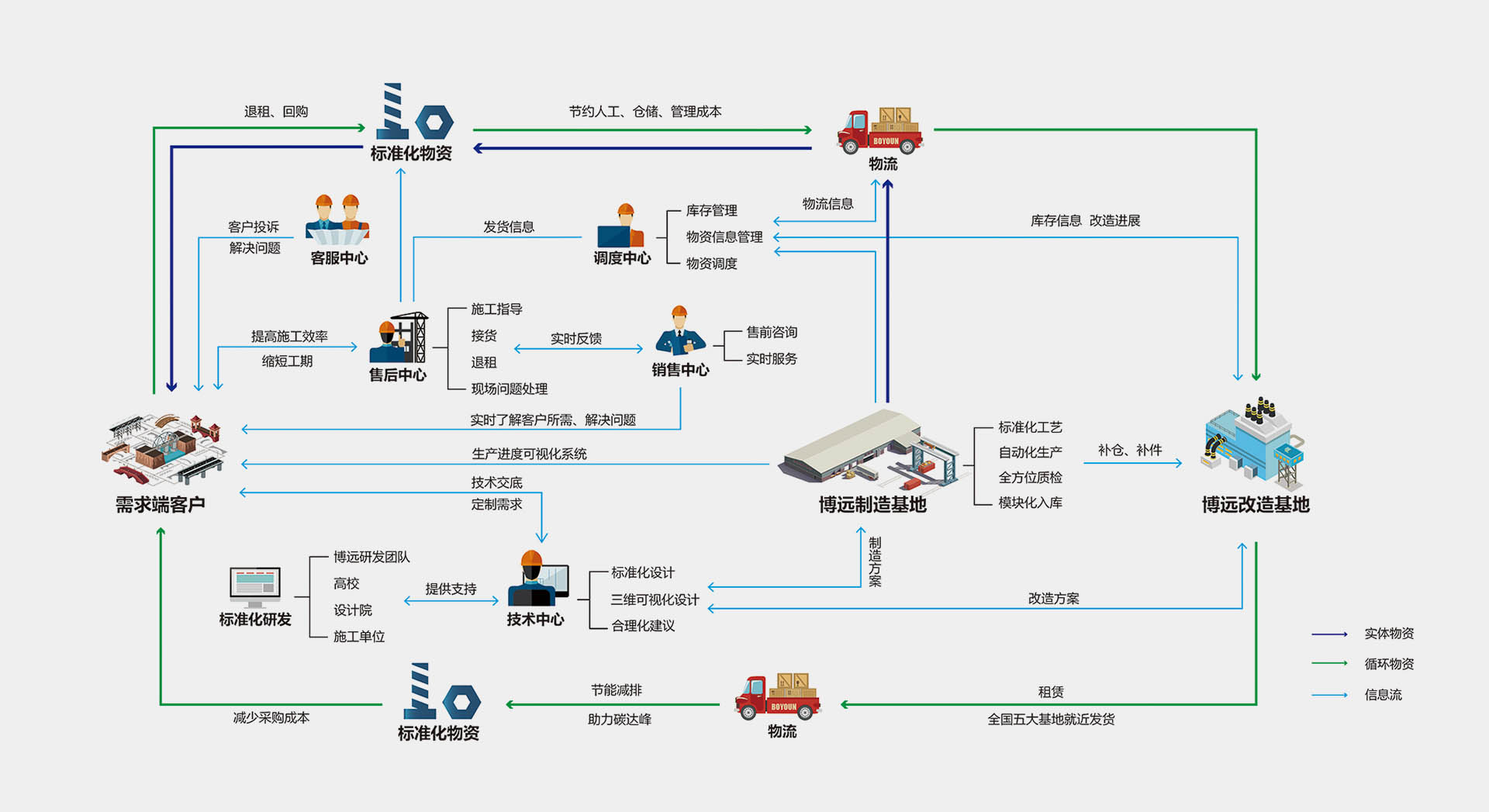 2013年博遠(yuǎn)首推行業(yè)物資租賃及標(biāo)準(zhǔn)化,降低客戶成本,提高資金使用率,同時可以節(jié)能減排,促進(jìn)國家雙碳目標(biāo)實現(xiàn)。
